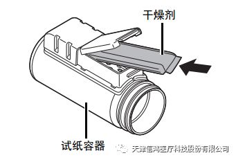 9 打开试纸容器的干燥剂装入盖,装入干燥剂。