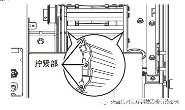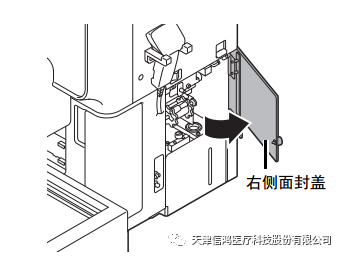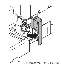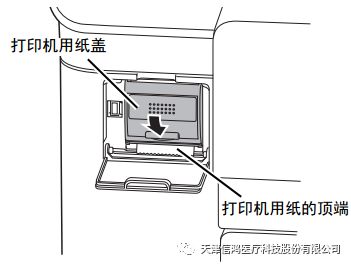 请将打印机用纸的顶端从打印机的刀部拉出数厘米,直至听到喀嚓声,牢固关闭打印机用纸盖。