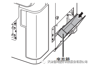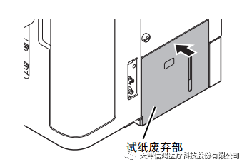 测定完成,动作停止后请按以下的步骤处理试纸废弃箱。