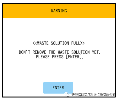 测定中如果废液瓶已满,显示以下警告信息,试纸的取出操作中断。